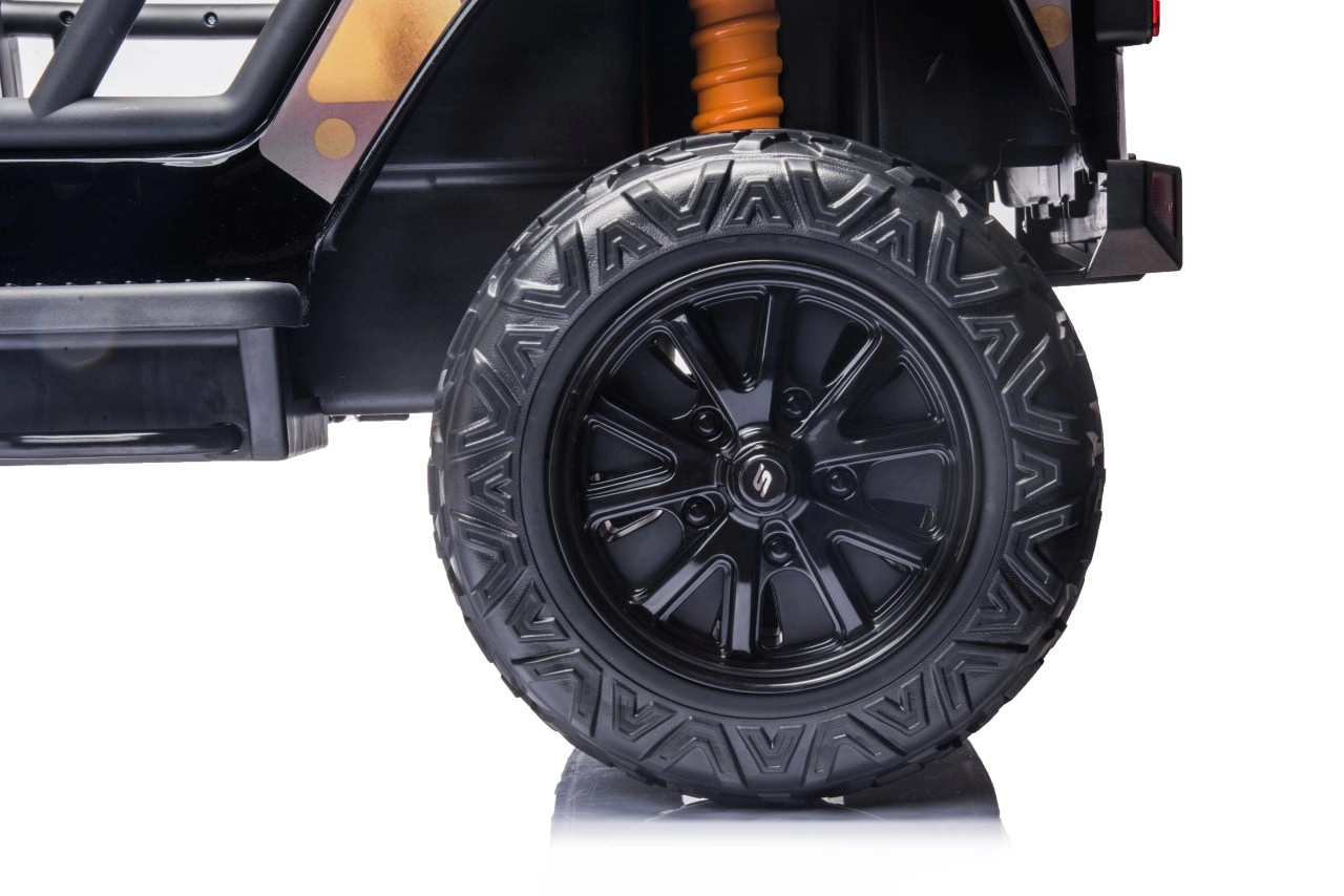 EVA kola a funkční odpružení zajišťují pohodlnou jízdu i mimo chodník, plynulý soft start a bezpečnostní pás podpoří jistotu malého řidiče. Pro klid rodičů je tu dálkové ovládání 2.4 GHz s možností asistence a okamžitého zastavení. Výbava jako kožené sedadlo, klakson, LED světla a multimédia MP3, USB či Bluetooth dělají z každého vozítka oblíbené dětské auto na baterii.