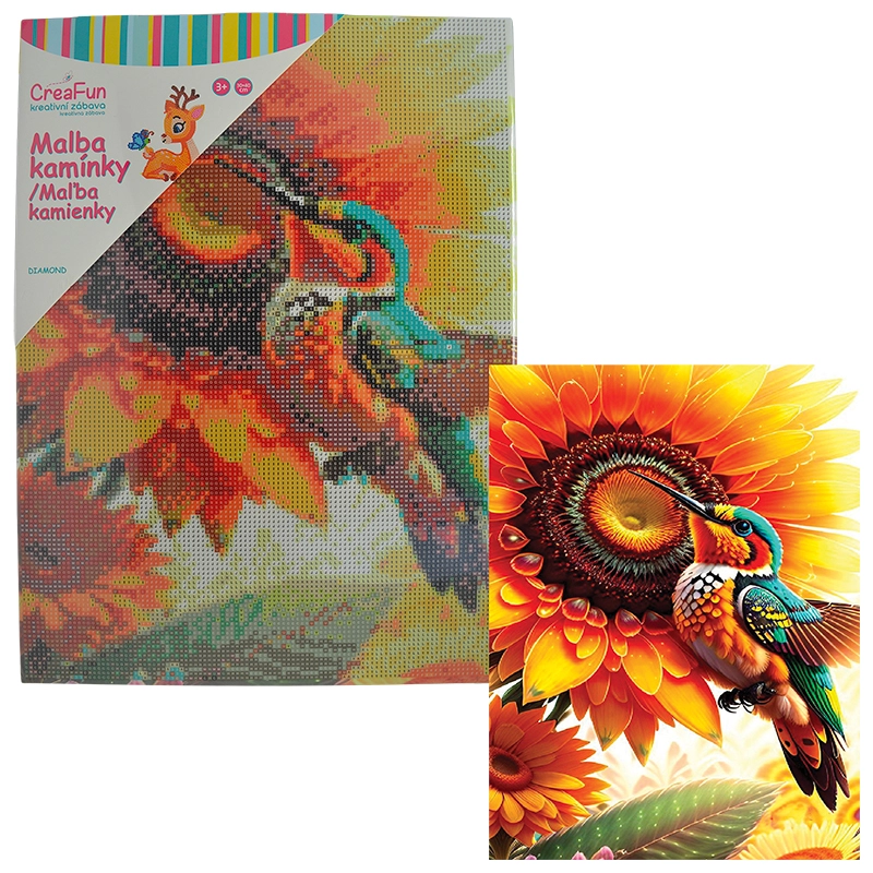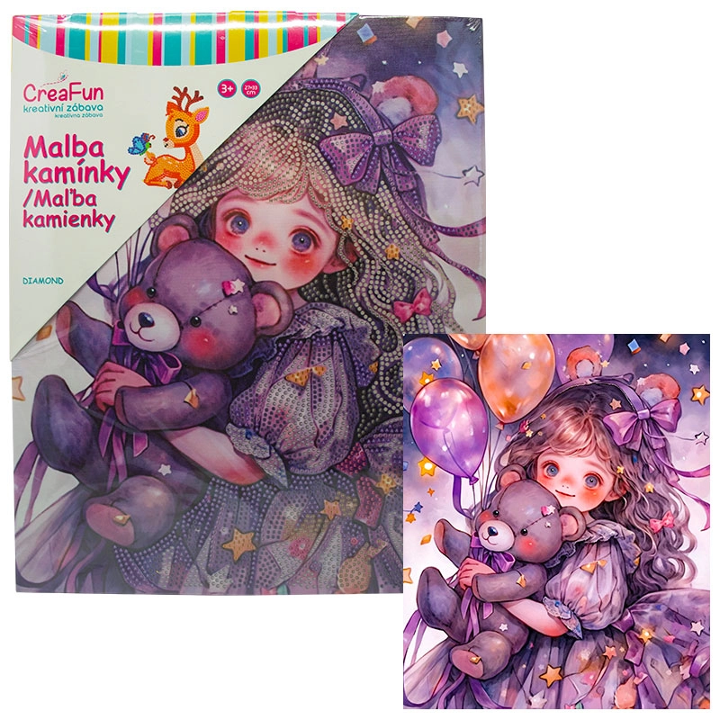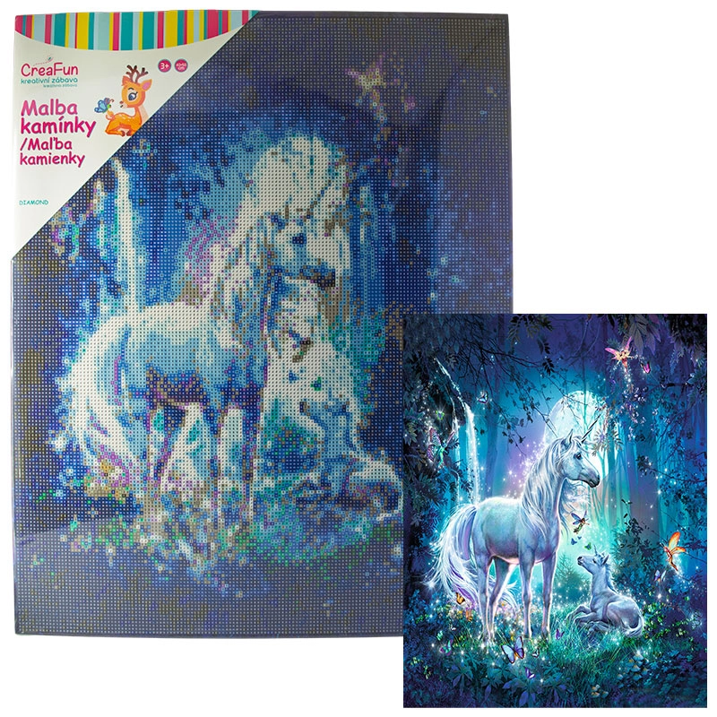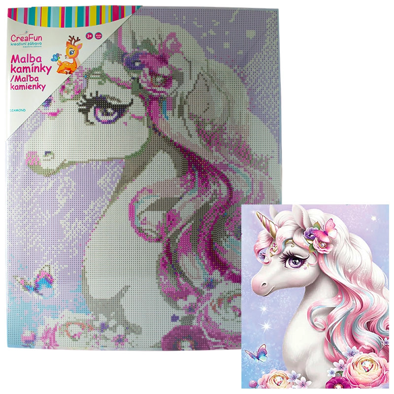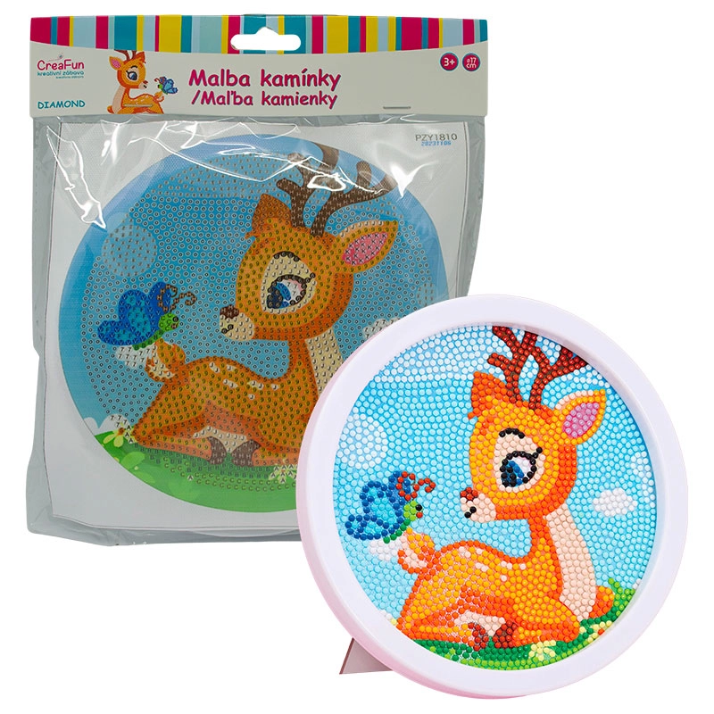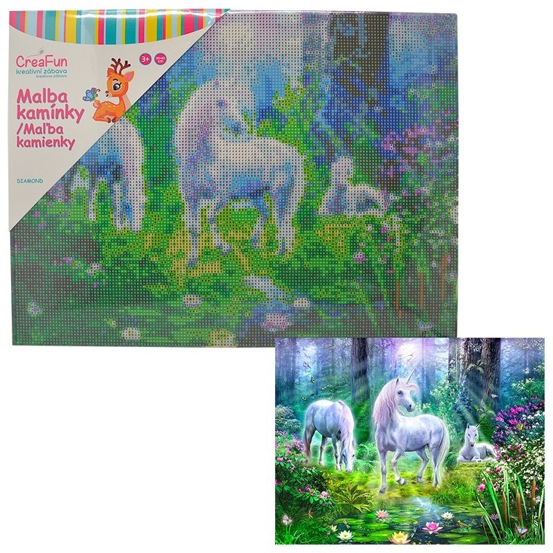 Rozzářete dětskou fantazii třpytem kamínků – diamantové malování pro děti promění každé odpoledne v zábavné tvoření. Dětské sady na diamantové malování (diamond painting) obsahují předtištěný obrázek s lepicí plochou, kulaté kamínky, aplikační pero a vosk, takže začít je snadné a zábavné. Díky větším symbolům a přehledné legendě je mozaika s kamínky přístupná i úplným začátečníkům a hotový obrázek září třpytivým 5D efektem.