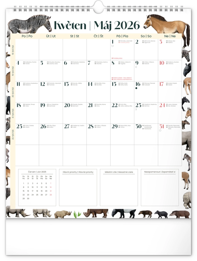 Kalendáře v praktických formátech A5, A4 i A3 mají kvalitní papír, přehlednou mřížku a jasné písmo pro čistý zápis. Oblíbená spirálová vazba, stabilní stojánek u stolních typů, odtrhávací listy a laminovaný či popisovatelný povrch zajišťují odolnost a dlouhou životnost. Pro ekologicky smýšlející jsou k dispozici varianty z recyklovaného papíru. Dětské motivy a pastelové barvy dělají z plánování zábavnou a motivující činnost; místo pro rozvrh hodin, domácí úkoly, testy a kroužky podporuje organizaci času. Kalendář výborně doplní školní i kancelářské potřeby a udrží pořádek v denních úkolech doma i ve škole. Vyberte si roční, měsíční nebo týdenní kalendář a mějte školní rok pod kontrolou.