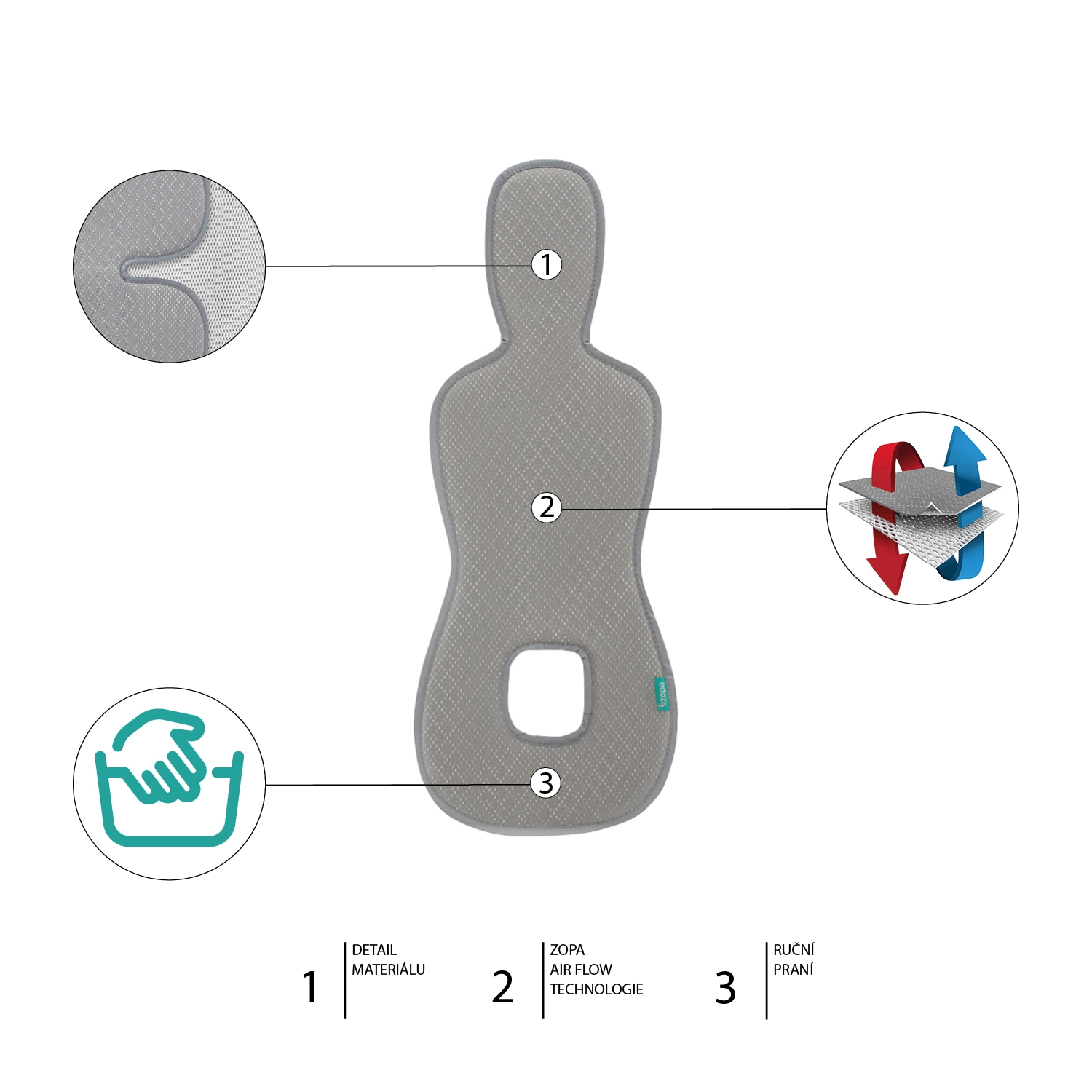 Pro dokonalou organizaci poslouží organizér na sedadlo a kapsář do auta s kapsami na hračky a svačinu, držák nápojů i držák tabletu; chránič sedadla s vybráním pro ISOFIX a neklouzavá podložka pod autosedačku ochrání čalounění. Polstrování a návleky na pásy, opěrka hlavy a cestovní polštářek zvyšují pohodlí a snižují tlak na citlivá místa. Když prší nebo obtěžuje hmyz, pláštěnka a moskytiéra na autosedačku udrží dítě v suchu a klidu.