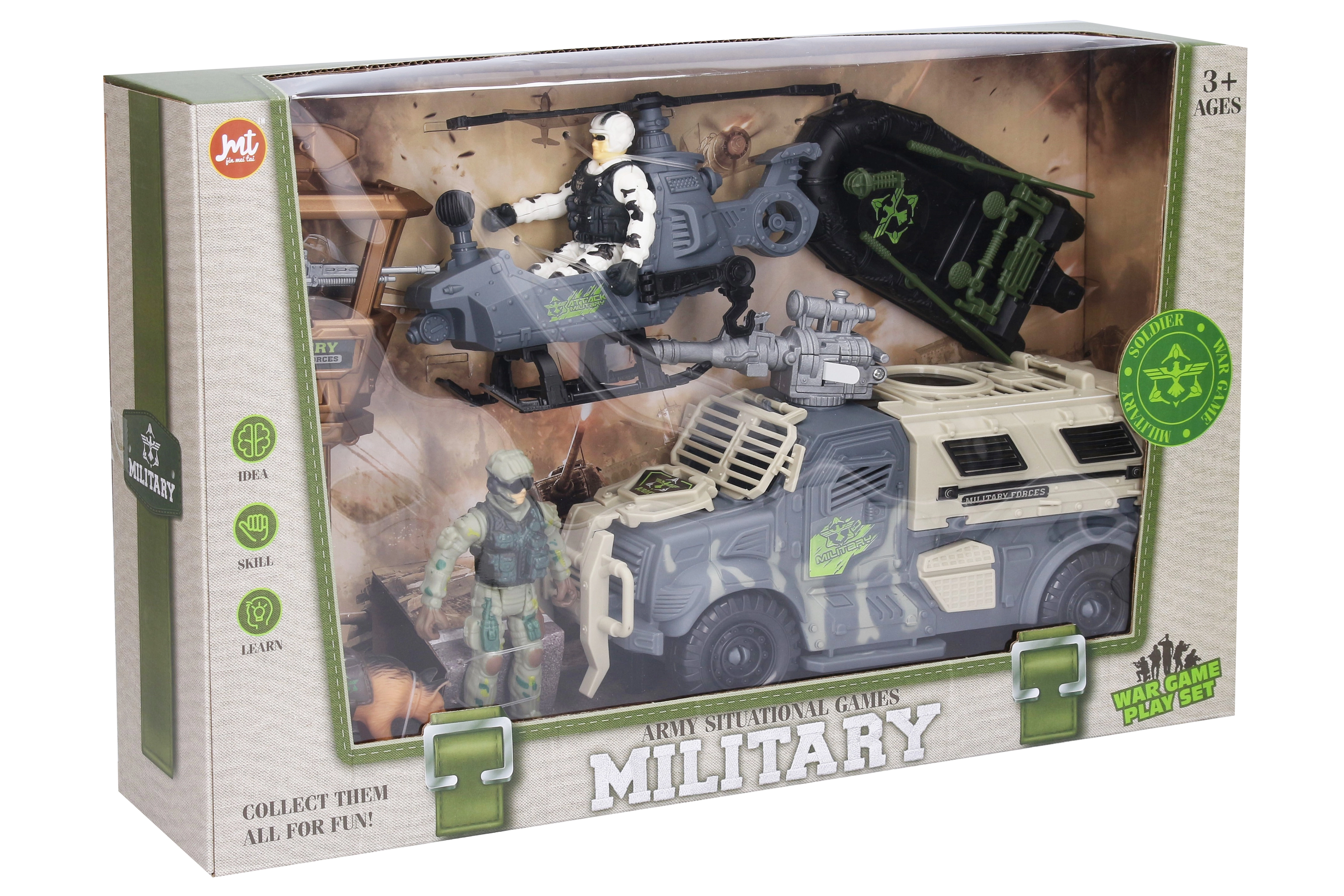Akční sety se světelnými a zvukovými efekty, tažnými háky a funkčními klouby zajistí zábavu na dlouhé hodiny. Snadno vytvoříte vlastní dioramata, základny či konvoje – vojenské sady, tanky, džípy, nákladní auta i lodě se dají kombinovat a rozšiřovat o příslušenství. Ať už hledáte první výbavu pro malé vojáky nebo detailní armádní techniku do sbírky, čeká vás kvalitní, kreativní a realistická hra.