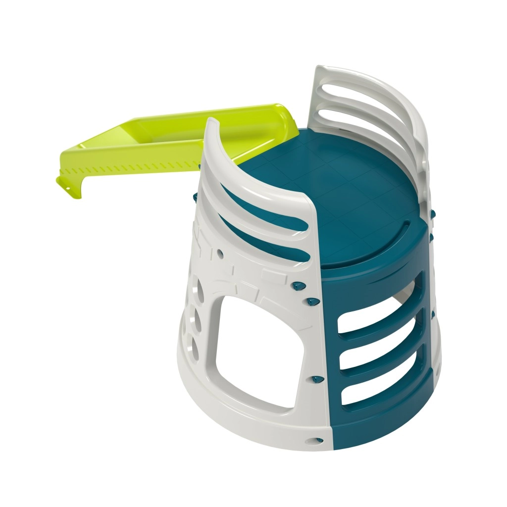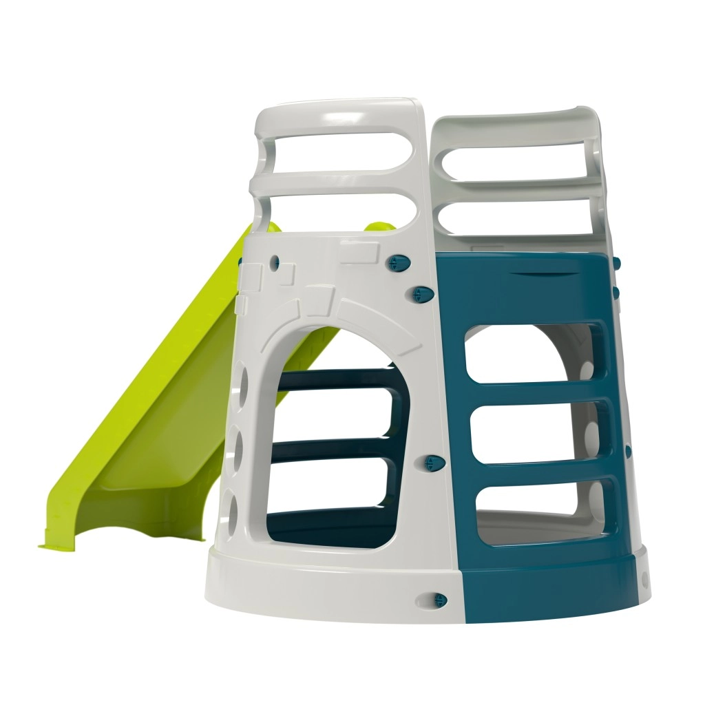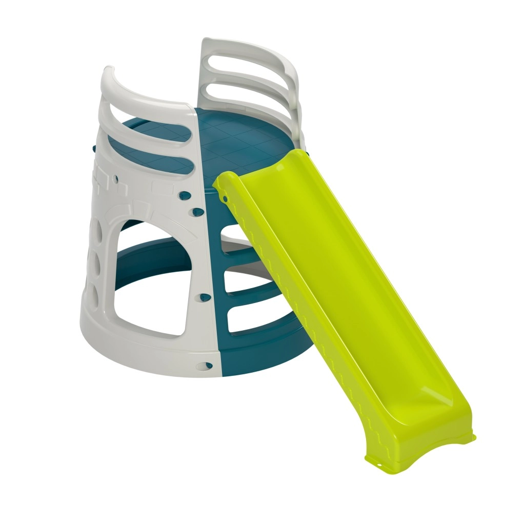 Promyšlené detaily zajišťují bezpečnost a odolnost: protiskluzové schůdky, široké nášlapy, zaoblené hrany, UV odolný materiál (kvalitní plast) a omyvatelný povrch pro dlouhou životnost. Dětská skluzavka na zahradu se snadno instaluje k herní věži či platformě – varianty pro různé výšky uchycení i typy konstrukcí. Stabilní základna a pevná nosnost dělají z venkovní skluzavky jistotu pro každodenní hraní.