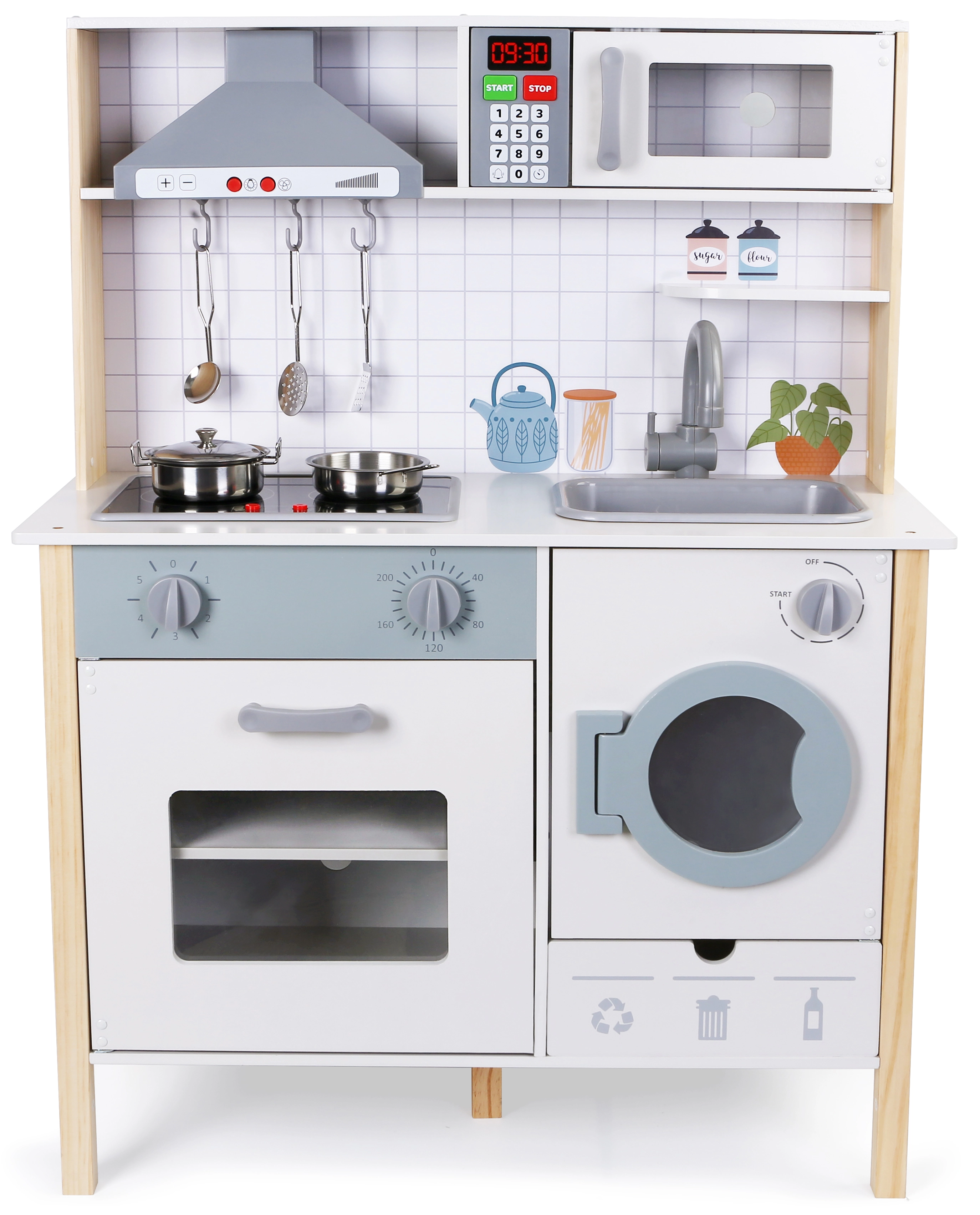 Moderní dětská kuchyňka podporuje kreativní role-play a hry na profese Kuchaři: rozvíjí fantazii, sociální dovednosti, jemnou motoriku i koordinaci. Kuchyňské spotřebiče pro děti a dětské nádobíčko učí plánovat postupy, třídit potraviny, počítat porce a pojmenovávat suroviny; krájecí potraviny na suchý zip zajišťují zábavnou a smysluplnou hru.