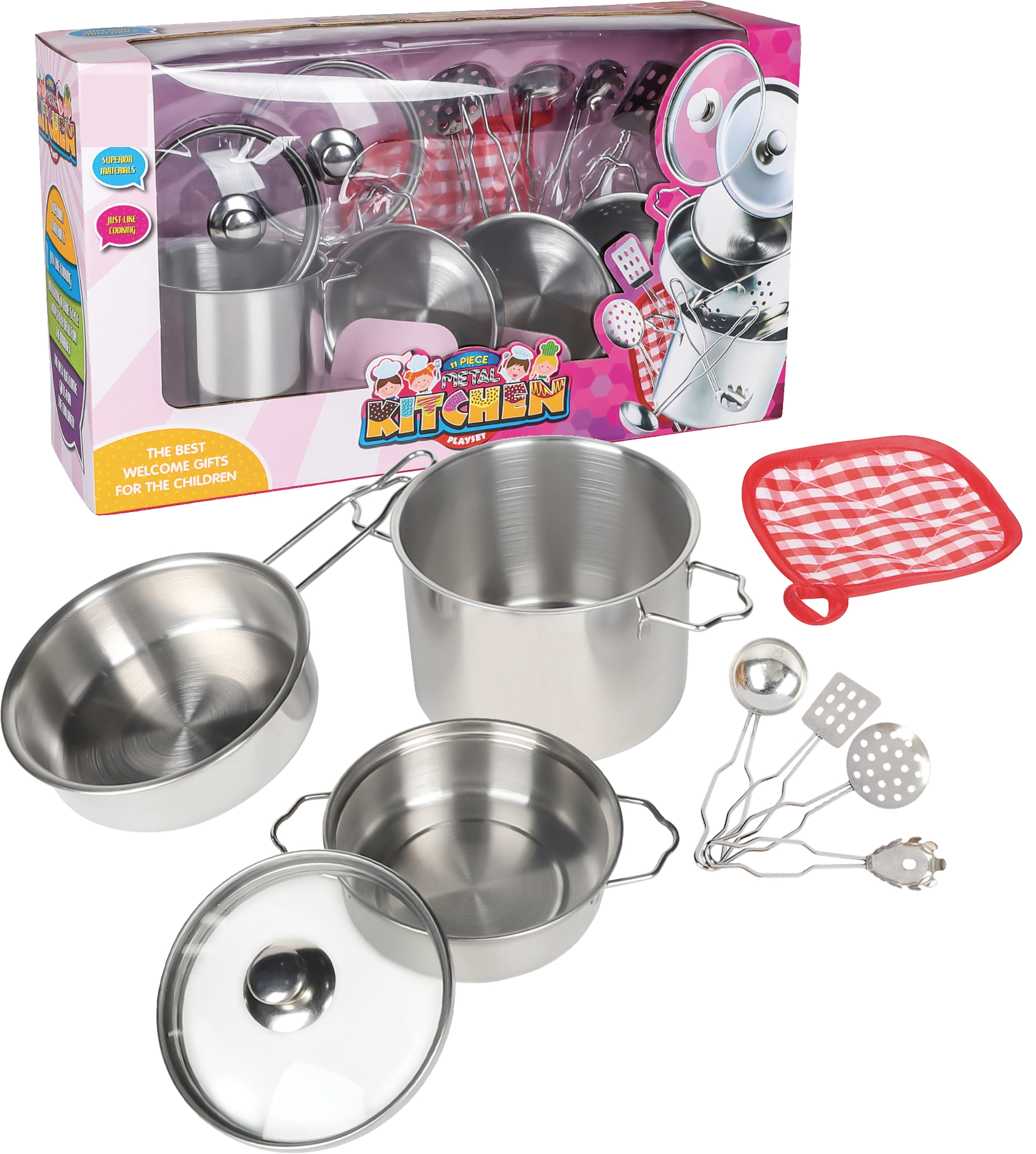 Základem dětského vaření jsou Kuchyňky s plotýnkami, troubou, dřezem i úložnými prostory a realistickými detaily, které podněcují hru. K dokonalému menu nesmí chybět Nádobíčko – hrnce, pánve, talíře a příbory v dětské velikosti. O opravdový zážitek se postarají Spotřebiče, jako mixéry, kávovary či toustovače, často se světelnými a zvukovými efekty. Šikovným pomocníkem jsou i kuchyňské zástěry pro děti.