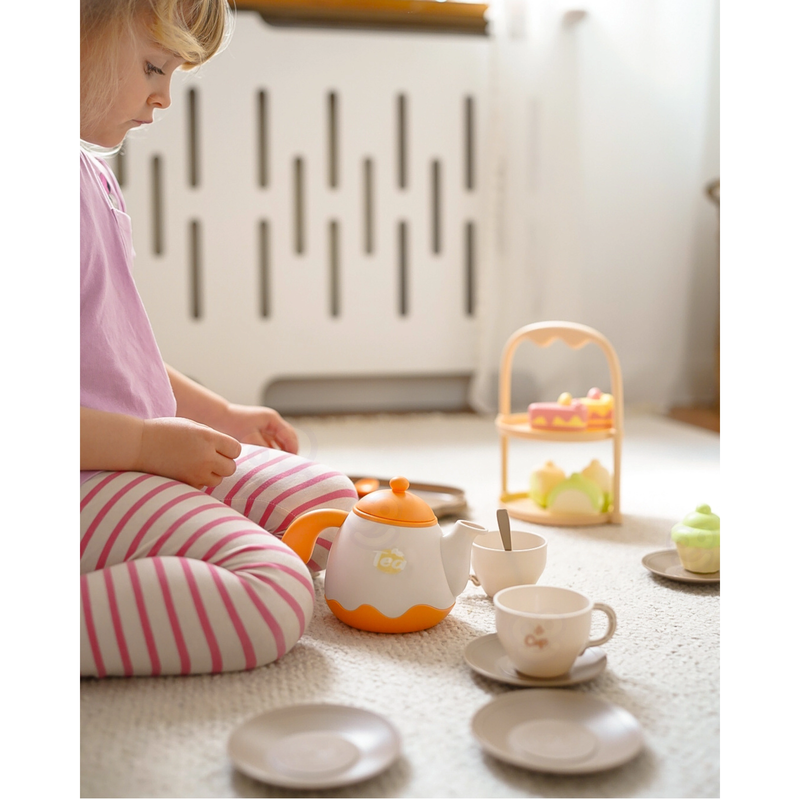 Hra na kuchaře s nádobíčkem rozvíjí fantazii, jemnou motoriku a koordinaci oko–ruka a podporuje spolupráci a komunikaci. Děti míchají, krájí, pečou, vaří a servírují, osvojí si stolovací návyky i slovní zásobu okolo potravin. Čajová sada pro děti a kávový servis povzbudí role play při odpoledním dýchánku, zatímco sada nádobí pro děti podpoří každodenní vaření na hraní.