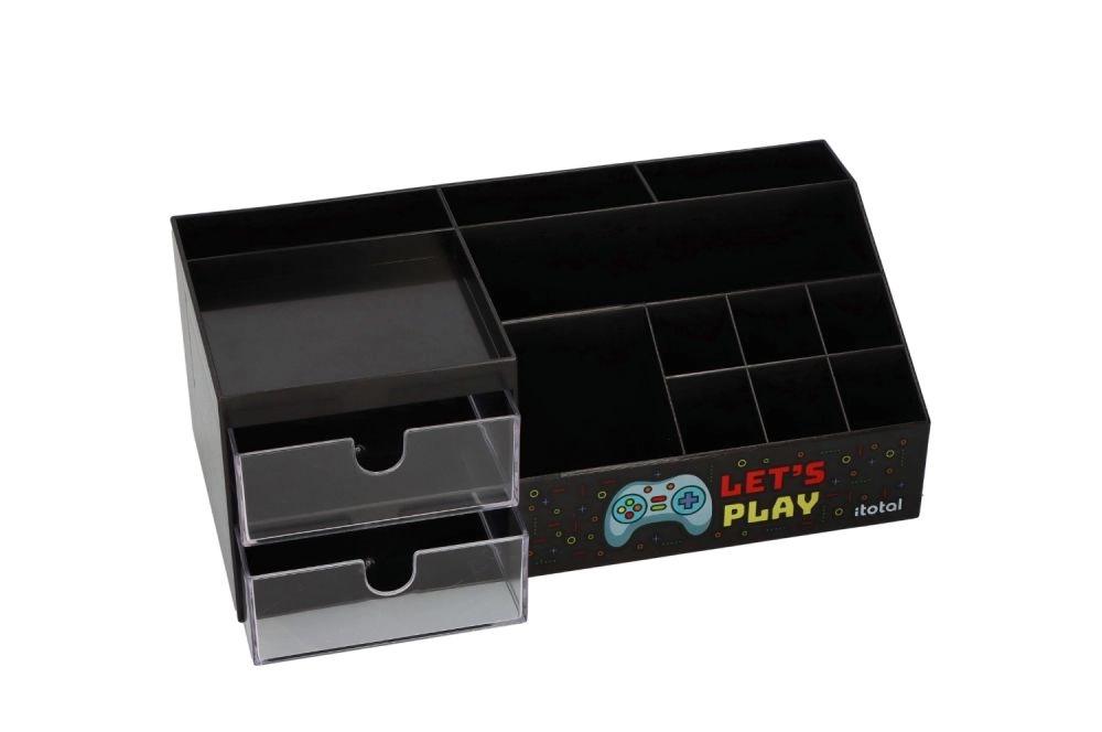 Vyberete si z materiálů a stylů: dřevěný stojánek na pastelky, kovový drátěný organizér, plastový box s víkem i textilní košík. Praktické pořadače dokumentů a stohovatelné zásobníky formátu A4/A5 šetří místo, transparentní a zásuvkové boxy umožní rychlou orientaci, protiskluzové nožičky a zaoblené hrany zajišťují bezpečné používání. Organizér na psací potřeby, držák na fixy, kelímky na štětce či zásobník na papíry – vše pro systematické třídění a pořádek.