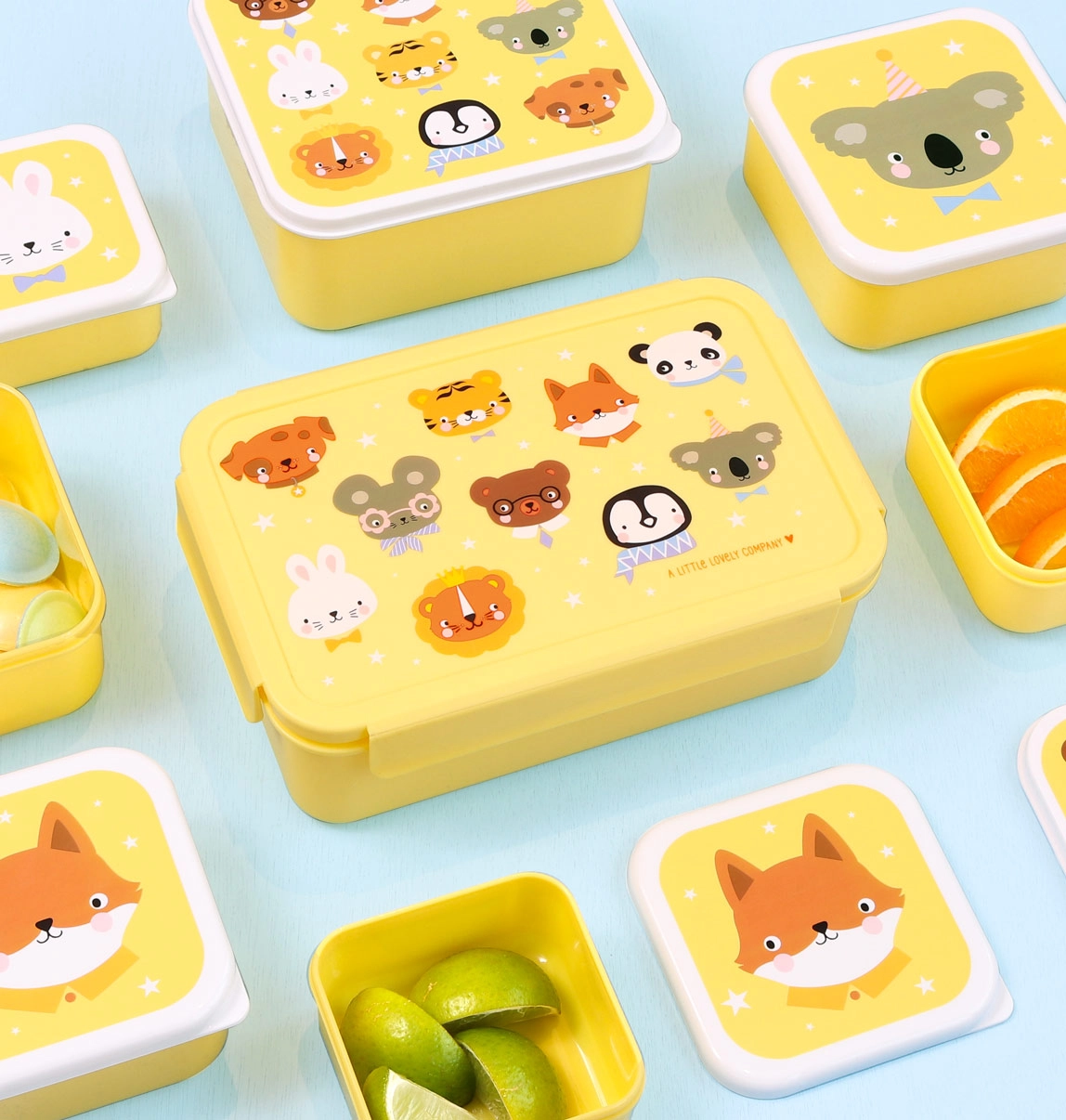 Zabalte dětem dobrou náladu i zdravou svačinu – dětské svačinové boxy a krabičky na svačinu udrží ovoce, pečivo i drobné pochoutky pěkně pohromadě. Bento boxy s chytrými přihrádkami a přepážkami pomáhají oddělit slané a sladké a udržet jídlo čerstvé. Nepropustné víčko, spolehlivý uzávěr na klip a silikonové těsnění zajišťují bezpečné přenášení v aktovce i batohu.