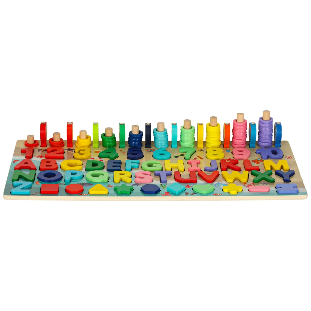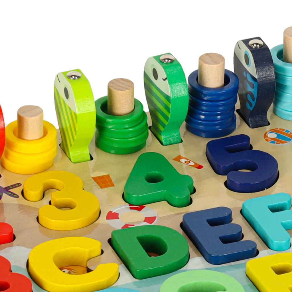 Dřevěná vzdělávací hra 3v1: sorter, počítadlo a magnetické chytání rybiček