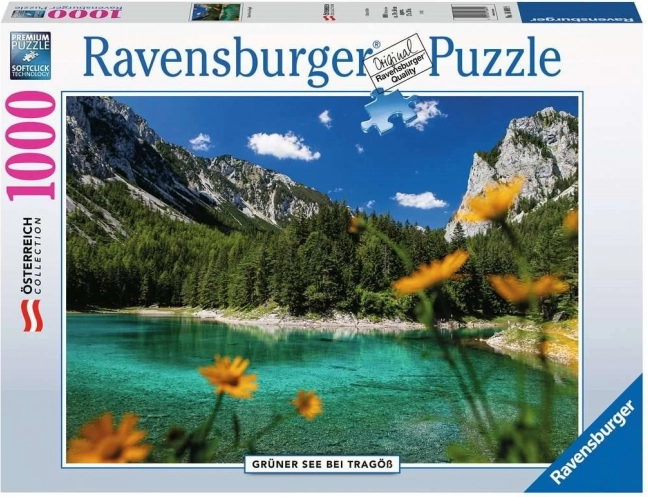 Objevte krásu rakouské přírody s tímto kvalitním puzzle RAVENSBURGER. Sada o 1000 dílcích zachycuje idylické Zelené jezero v Tragöß a po složení vytvoří obraz o rozměrech cca 70 × 50 cm. Skvělá volba pro relaxaci, trénink soustředění a nádhernou dekoraci interiéru.