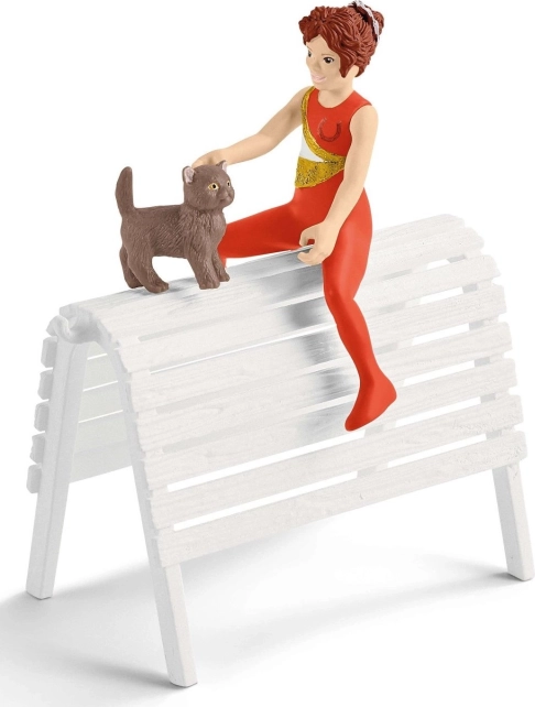 Objev svět koní s hracím setem, který dětem přináší realistický trénink voltíže. V balení najdete figurky Mii a trenéra Toma, turnajového koně s odnímatelným sedlem a uzdečkou, ohradu pro bezpečný trénink, trofej pro vítěze i roztomilé kotě s košíkem. Figurky mají pohyblivé končetiny pro ještě lepší hru a procvičení fantazie.