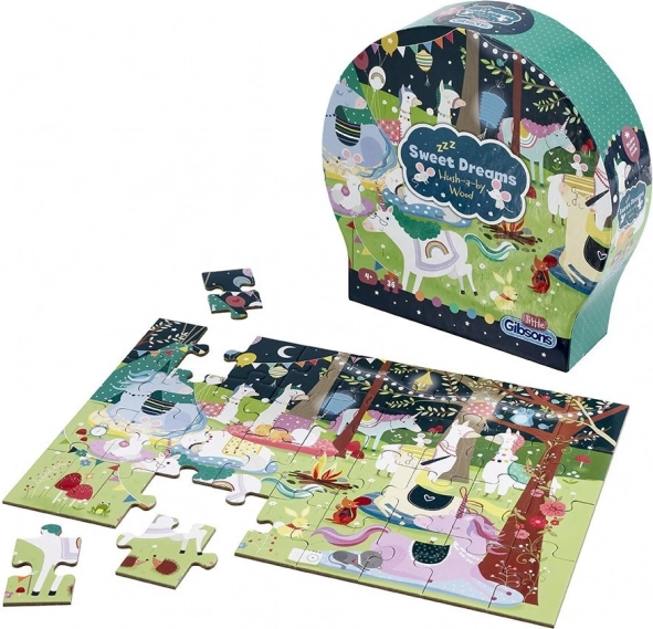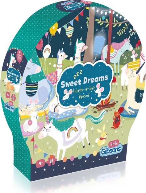 Puzzle Sladké sny s 36 dílky nabízí kouzelnou cestu do světa snů plného lam a jednorožců. Ideální pro stimulaci paměti a rozvoj dětské představivosti.