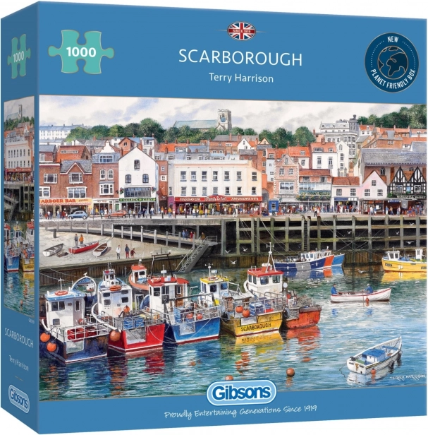 Užijte si relax s kvalitním puzzle od značky GIBSONS. Obrázek zachycuje malebné pobřežní město Scarborough v Yorkshire a nabízí 1000 dílků pro příjemnou výzvu. Po složení vznikne formát cca 68 × 49 cm, ideální pro zarámování nebo vystavení.