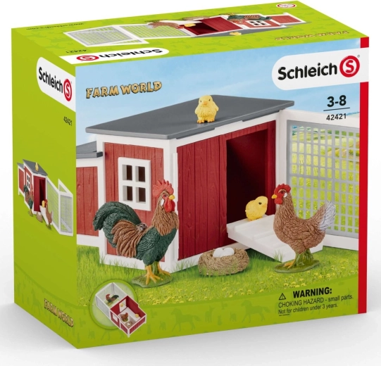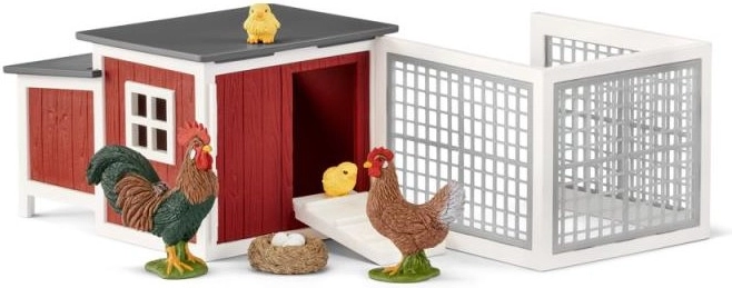 Zábava s domácími zvířátky! Figurky a doplňky z kolekce Farm World jsou propracovány do posledního detailu a přiblíží ti život na venkově. Staň se farmářem a vyzkoušej si, jaké to je starat se o celou řadu hospodářských zvířat. Balení obsahuje: kurník s výběhem, figurku slepice, kohouta a dvou kuřátek a doplňky. Přesně za ranního úsvitu vyskočí kohout na střechu kurníku a zakokrhá. S prvními slunečními paprsky se objeví také slepice. Začnou hrabat a zobat zrní, když z kurníku zazní pípání. Skládací střecha prozrazuje milé tajemství: z vajec se vylíhla kuřátka! Schleich jsou realistické a do detailů propracované figurky, kde se designeři soustředili na filozofii těla, strukturu svalů a celkový výraz postavičky. Děti si tak mohou hrát se zvířátky z celého světa, pravěkými dinosaury, filmovými a pohádkovými postavičkami, které jsou věrnou kopií svých předloh, a kouzelnými elfy a vílami z magického světa Bayala. Vhodné pro děti od 3 let.