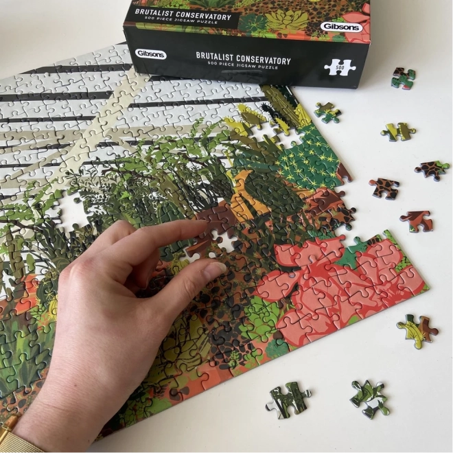 Objevte kouzlo městské džungle s puzzle od značky GIBSONS. Ilustrace zachycuje zimní zahradu v londýnském Barbicanu s tropickými rostlinami, listnáči a kaktusy. Skládání 500 dílků nabízí relaxační zážitek, kvalitní zpracování a předlohu v balení pro snadnější skládání.