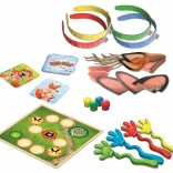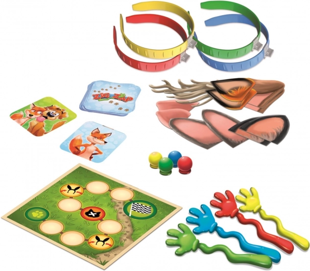 Hra obsahuje vše potřebné pro úžasnou zábavu: 4 plácačky, 4 čelenky, 6 párů uší, 45 karet, 4 figurky a hrací deska. Sestavte tým a vydejte se za dobrodružstvím, které vás vtáhne do fascinujícího světa zvířat.
