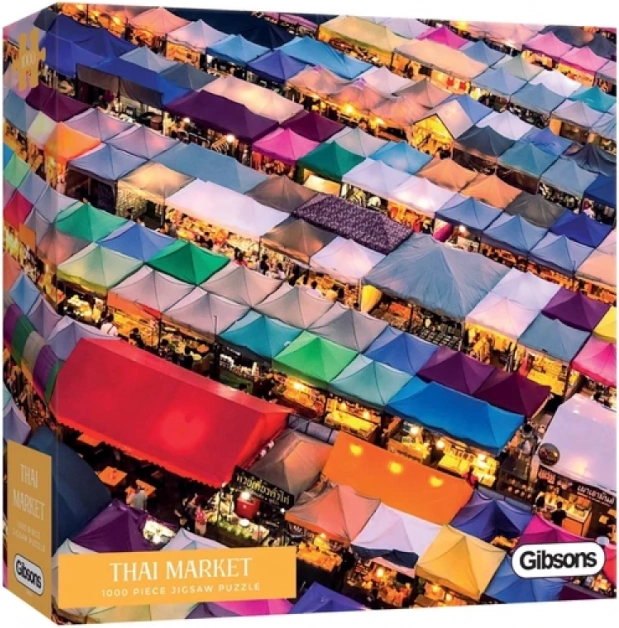 Přeneste se na rušné uličky Asie s motivem thajského tržiště a užijte si chvilky klidu při skládání. Puzzle GIBSONS vyniká precizním výsekem a sytými barvami, které zvýrazní detailní ilustraci plnou života a atmosféry.