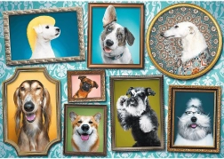 Rozveselte si volné chvíle puzzlem s motivem veselých pejsků v psí galerii. Precizně vyřezané dílky dobře zapadají a vytvářejí detailní, barevný obraz o velikosti 68,3 × 48 cm.