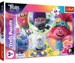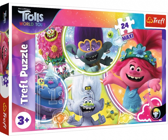 Objevte kouzelný svět hudby a barev s puzzle TREFL Trollové 2: Náš hudební svět. Díky velkým MAXI dílkům se dětem snadno manipuluje a skládání je zábavné i poučné. Motiv oblíbených postaviček z filmu potěší všechny malé fanoušky.
