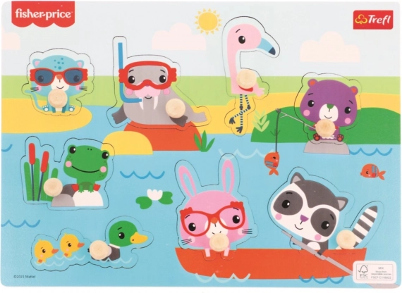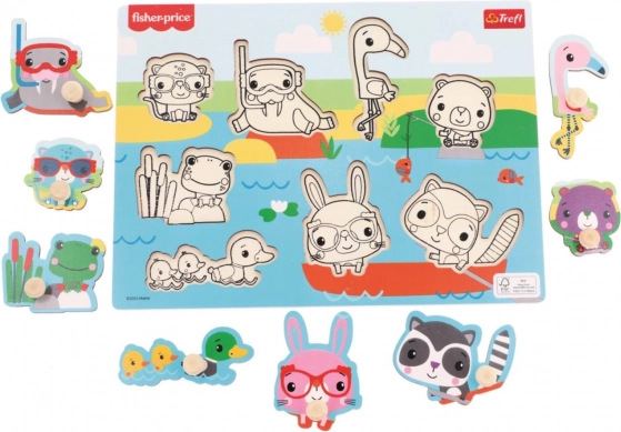 Díky barevným obrysům na podkladové desce mohou děti snadno najít správné místo pro zvířátko, což je činí nadšenými objevovateli. Součástí jsou zvířátka jako je mýval, plameňák a kačenka, která ještě více zábavu umocňují.