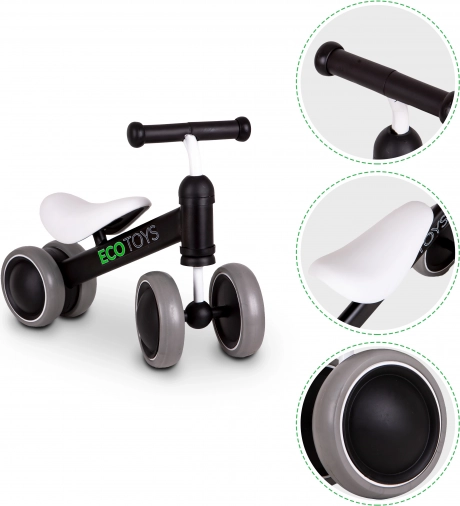 Mini odrážedlo ECO TOYS je skvělé první kolo pro batolata. Pomáhá rozvíjet koordinaci pohybů, držení rovnováhy a dovednosti jako nasedání, sesedání a odrážení. Kompaktní rozměry a měkká, nebarvící kolečka z něj dělají perfektní volbu pro vnitřní i venkovní použití.