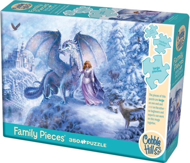 Užijte si společné chvíle s rodinným puzzle COBBLE HILL Ledový drak o 350 dílcích. Balení obsahuje dílky ve třech velikostech pro děti i dospělé, takže si skládání užije celá rodina. Díky originálním, nepravidelným tvarům je skládání zábavně náročné a výsledný obraz vynikne krásnými detaily. Rodinný formát se třemi velikostmi dílků, originální raznice bez klasické mřížky, motiv ledového draka a kvalitní zpracování COBBLE HILL zaručují skvělý zážitek.