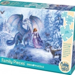Rodinné puzzle COBBLE HILL Ledový drak je navrženo tak, aby si ho užili malí i velcí. V jedné části obrázku najdete velké dílky ideální pro menší děti, uprostřed střední dílky pro pohodlné skládání a na druhé straně malé dílky pro zkušenější skládače. Každý si tak najde svoji část motivu a skládání probíhá v pohodě a společně.