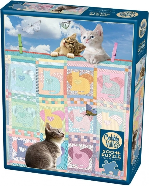 Užijte si relax u skládání půvabného motivu Přikrývka s koťátky od značky COBBLE HILL. Speciální nekonvenční tvar dílků zvyšuje zábavu i výzvu, přiložená barevná předloha vám pomůže při skládání. Hotové puzzle má rozměr cca 48,9 × 67,6 cm a obsahuje 500 dílků.