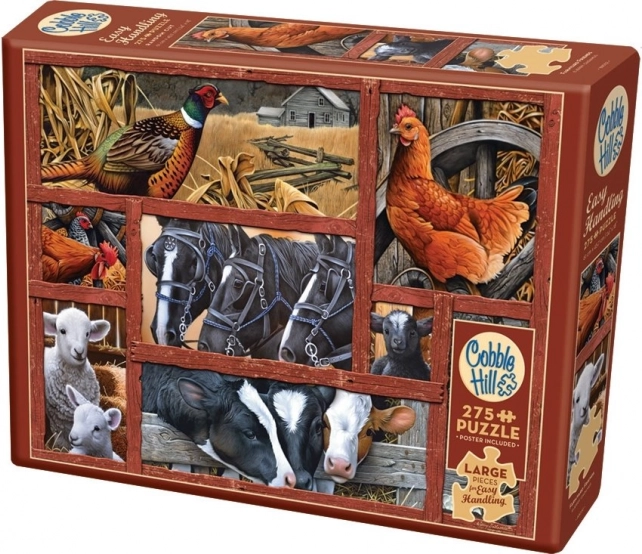 Užijte si pohodové skládání s puzzle COBBLE HILL z kolekce Easy Handling a motivem přátelé na farmě. Díky extra velkým dílkům (cca 3 cm) se s nimi skvěle manipuluje, což ocení děti i starší věkové skupiny. Nepravidelný výsek bez klasické mřížky přináší zábavnou výzvu a podporuje procvičování jemné motoriky. V balení najdete také předlohu 31,6 × 22,9 cm; hotové puzzle má rozměr cca 61 × 45,7 cm.