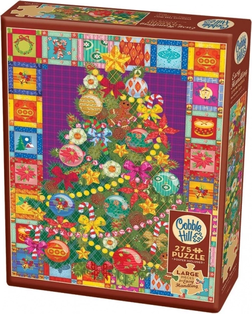 Speciální raznice značky COBBLE HILL nekopíruje standardní mřížku – rohy a hrany dílků nejsou vždy v jedné ose, takže získáte zábavnější výzvu než u běžných puzzle. Sestavený obraz má rozměry cca 45,7 × 61 cm a stane se krásnou zimní dekorací.