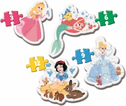S tímto setem Moje první puzzle si děti užijí skládání s milovanými hrdinkami z pohádek DISNEY. Čtyři různé obtížnosti (3, 6, 9 a 12 dílků) umožní přirozený pokrok a posílí sebevědomí při každém dokončeném obrázku. Díky extra velkým a silným dílkům (3 mm) se puzzle snadno drží i těm nejmenším ručičkám.