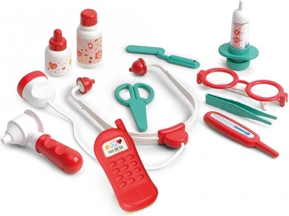 Bohatá sada příslušenství – od stetoskopu a teploměru po stříkačku a otoskop – podporuje nápodobu reálných situací a rozvoj sociálních dovedností. Otevíratelné okenice s otvorem a půlkřídlové dveře s kulatou rukojetí usnadňují interaktivní hru a komunikaci mezi „lékařem“ a „pacientem“.