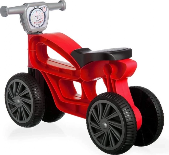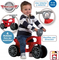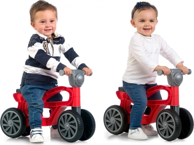 Hurá do akce! Toto atraktivní odrážedlo ve tvaru motorky je ideální pro nejmenší jezdce, kteří začínají objevovat svět a učí se držet rovnováhu. Díky čtyřem kolům je lehké, bezpečné a stabilní, má vynikající odolnost materiálu a hodí se pro vnitřní i venkovní použití. Perfektní volba pro děti od 10 měsíců do 3 let.