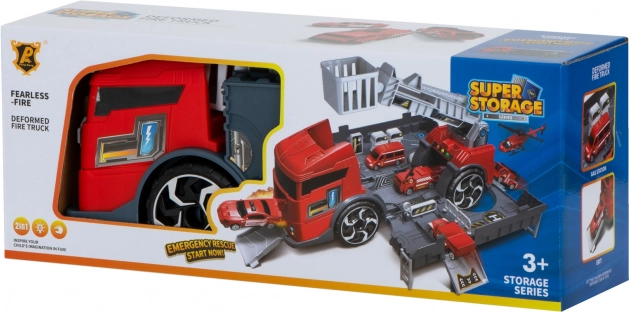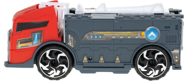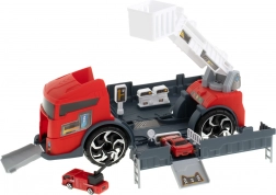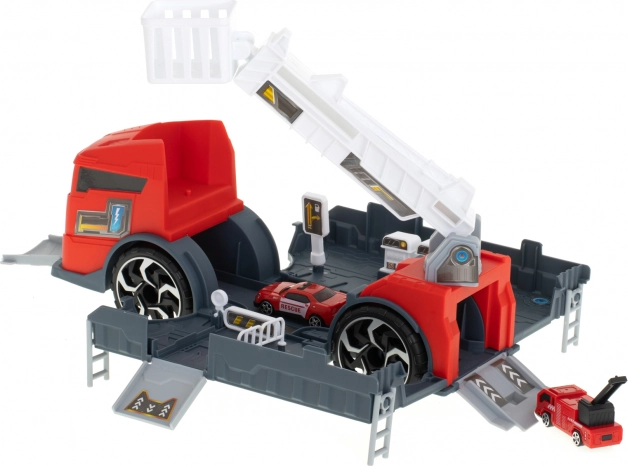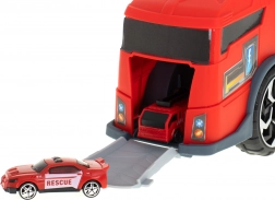 Hasičský kamion funguje jako transportér, který přepraví přiložené modely autíček s pomocí rampy.