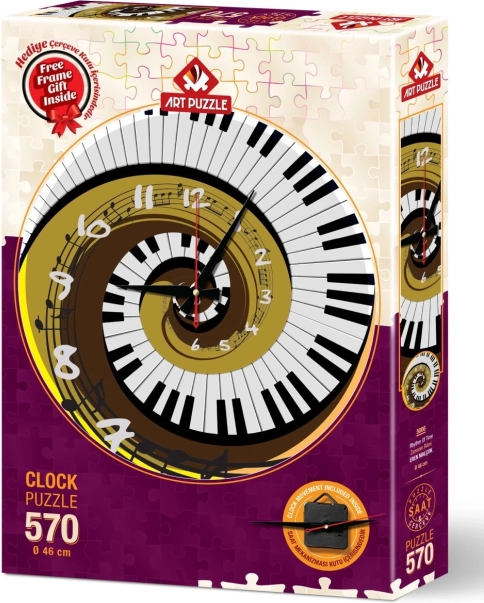 Vytvořte si doma stylovou dekoraci s praktickým využitím. Kulaté puzzle s motivem kláves spojíte do průměru cca 46 cm, přilepíte na podklad a vložíte do rámu. Po zaschnutí stačí vložit baterii a máte hotové nástěnné hodiny, které zaujmou v obýváku, pracovně i dětském pokoji.
