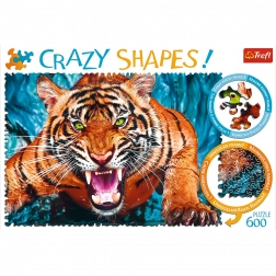 Objevte Puzzle Crazy Shapes, revoluční série, která přináší dílky s netradičními tvary, bez rovných hran a s nepravidelným okrajem. Po složení vznikne obrázek o rozměrech 680 x 480 mm, který zobrazuje impozantního tygra.