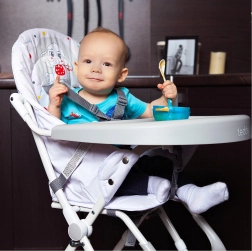 Praktická a stabilní židlička pro samostatně sedící děti do 15 kg. Příjemné materiály, bezpečný 5bodový postroj a nastavitelná opěrka nohou ve 3 úrovních zajistí pohodlí při každém jídle. Prostorný pultík s místem na hrneček se snadno udržuje čistý.