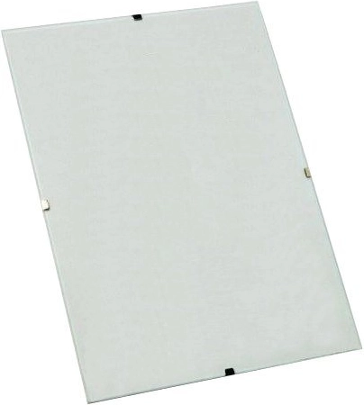 Rám tvoří plexisklo o síle 1 mm se zabroušenými hranami a pevná základní deska s úchyty pro vertikální i horizontální zavěšení. Kovové sponky spolehlivě přichytí plexisklo k podložce a oboustranná ochranná fólie chrání povrch před poškrábáním do okamžiku instalace.