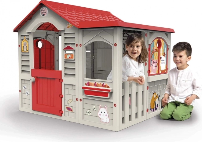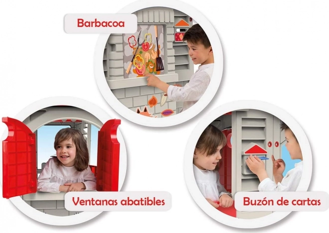 Promyšlené detaily včetně poštovní schránky, zadního "grilu" a průchodu pro domácí mazlíčky dělají z domečku atraktivní herní prostor. Snadná montáž a stabilní konstrukce zaručují bezstarostné používání a dlouhou životnost.