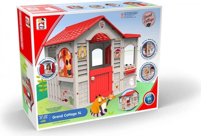 Dětský domeček Grand Cottage XL je skvělým centrem her pro malé dobrodruhy. Díky odolnému plastu se hodí na zahradu i do dětského pokoje a jeho hladké hrany zajišťují maximální bezpečí i pro nejmenší. Sedlová střecha, otevírací okenice a nízká vrátka podporují fantazii a přirozené hraní.