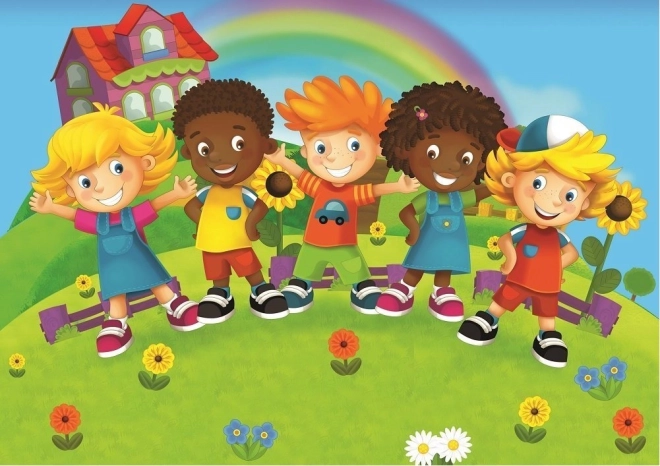 Objevte zábavnou dvojici puzzle s motivem dětí – ideální pro společné skládání i rozvoj jemné motoriky. Balení obsahuje dva obrázky stejné velikosti, ale s různou obtížností – 12 dílků a 24 dílků. Každé složené puzzle má rozměr přibližně 34 × 24 cm.