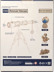 Objevte kouzlo konstrukce s 3D dřevěným modelem monokulárního dalekohledu ROBOTIME Rokr. Tento krásně zdobený dalekohled nabízí trojnásobné zvětšení a skutečnou dohledovou vzdálenost až 150 metrů, což z něj činí ideální dekorativní i funkční prvek.