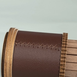 Dřevěný tubus s koženým pruhem a kovovým štítkem dodává modelu vintage vzhled, který ozdobí každý interiér.
