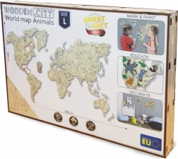 Dřevěná zvířecí mapa světa je ideálním řešením pro milovníky cestování i jako vzdělávací pomůcka pro děti. Pomáhá rozvíjet zájem o geografii a zoologie a umožňuje dětem malovat navštívená místa s rodinou akrylovými barvami.