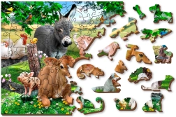 Dřevěné puzzle WOODEN CITY nabízí nejen nekonečnou zábavu, ale také estetický zážitek díky speciálně tvarovaným dílkům. Dílky ve tvaru zvířat a předmětů jsou obohaceny o detaily vytvořené laserem, které mohou sloužit i jako malé figurky. Díky oboustrannému designu můžete puzzle skládat podle obrázku na jedné straně nebo podle vzoru tvarů na druhé. Tento koncept nejenže nabízí vyšší obtížnost, ale také podporuje problem-solving a prostorové vnímání.