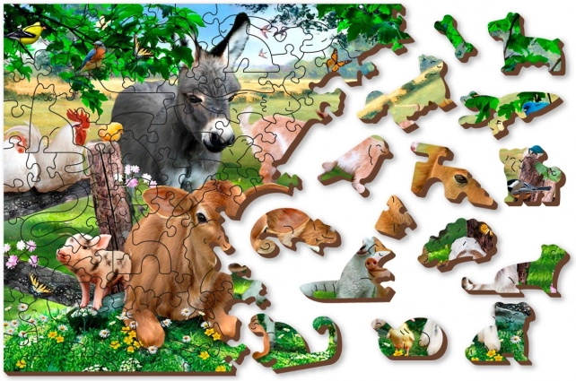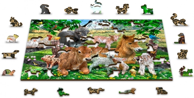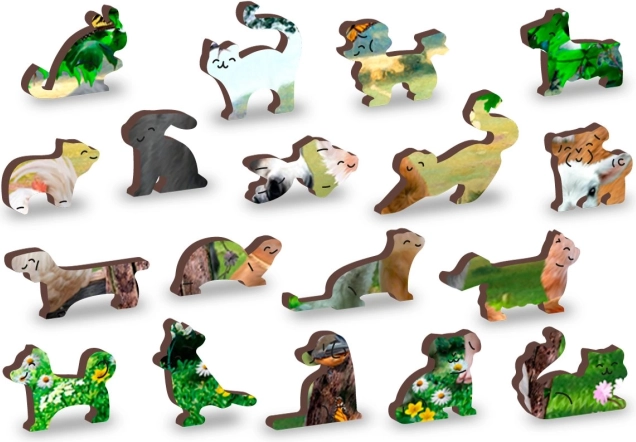 Dílky jsou vyřezávány laserem do tvarů zvířat a předmětů, což zvyšuje estetickou hodnotu a zajímavost skládání.