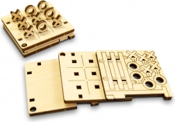 Objevte zábavné dřevěné 3D puzzle, které se po sestavení promění v kapesní hru piškvorky. Sestavení je rychlé a bez nástrojů, takže během pár minut jste připraveni hrát. Díky kompaktním rozměrům se hra vejde do kapsy či batohu a je skvělým společníkem na cesty.