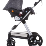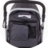 - Praktické detaily: prostorný koš, polstrovaný kryt nohou na zip, snadné skládání rámu.