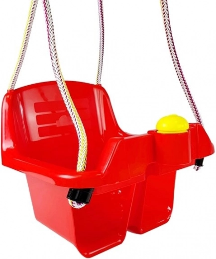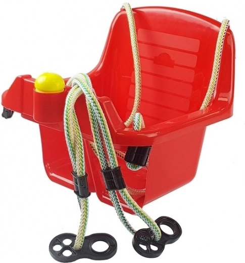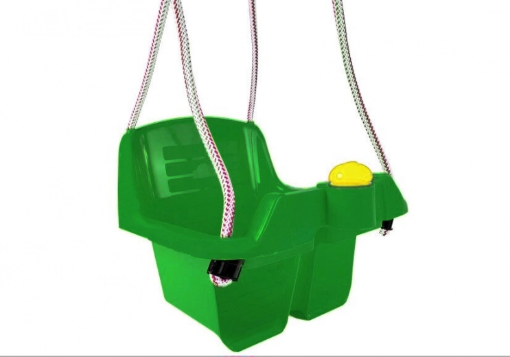 Bezpečná kbelíková houpačka pro nejmenší nabízí hluboké sedátko, vysoké opěradlo a přední zábranu pro stabilní sezení. Odolný plast s pevným závěsným lanem je vhodný do interiéru i na zahradu. Součástí je i zábavné tlačítko/klakson, které potěší malé děti.