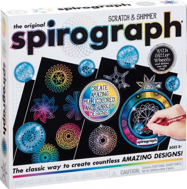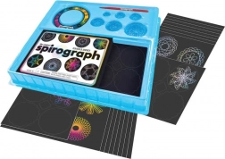 Sada Spirograph Scratch & Shimmer přináší klasickou spirografickou zábavu v nové podobě. Černý voskový povrch papírů po vyrývání odhaluje duhové nebo třpytivé barvy, takže každý motiv vynikne. Díky různým šablonám a kolečkům snadno vytvoříte mandaly, ornamenty i originální obrázky.