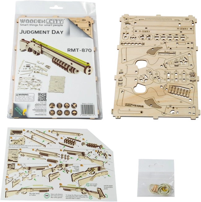 Postavte si autentický model zbraně, který střílí gumičky a má propracované detaily jako pojistka a zásobník na náboje. Model lze snadno sestavit díky ekologickým dřevěným materiálům a nepotřebujete k tomu žádné lepidlo nebo nářadí.